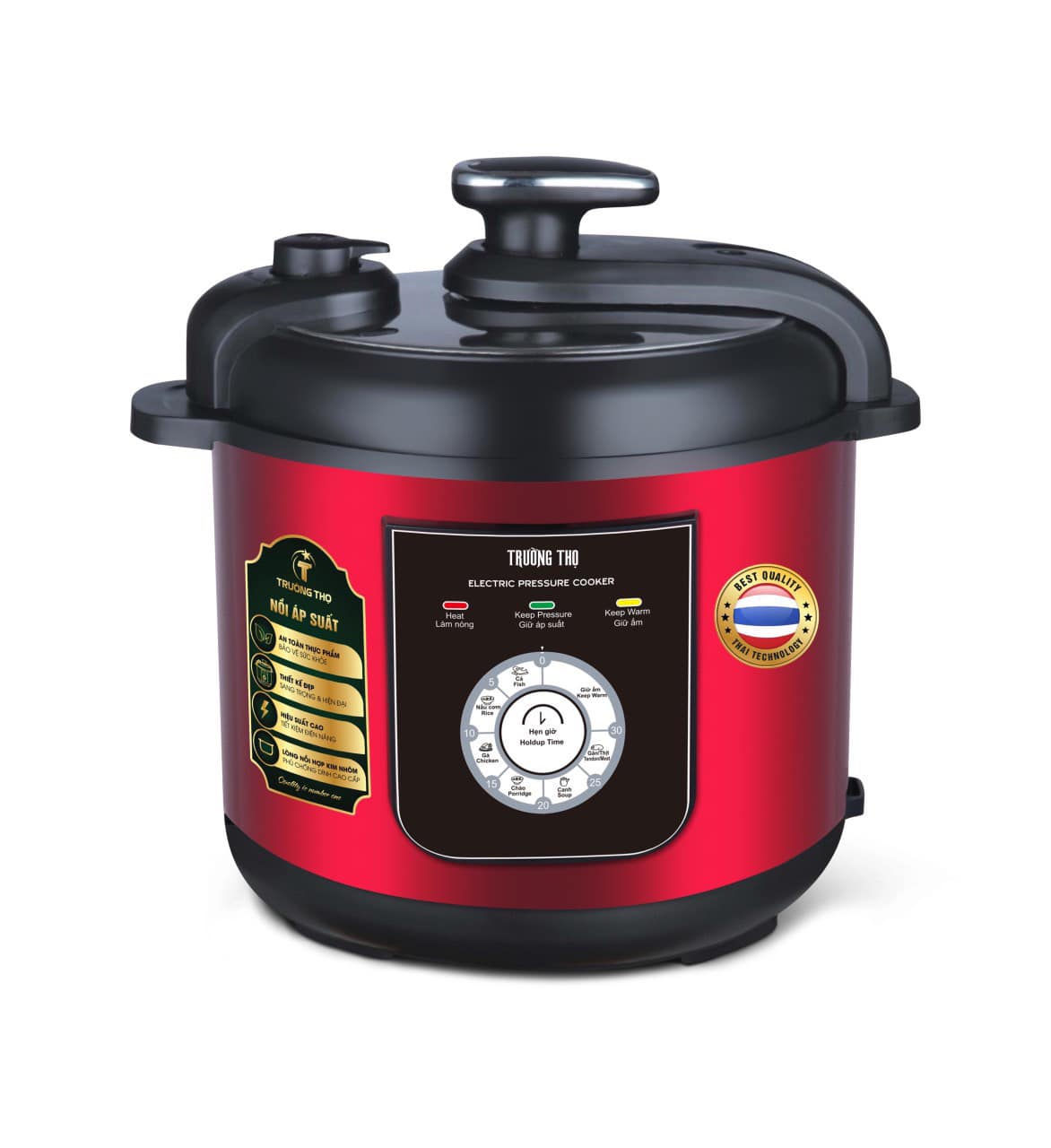 Nồi áp suất điện Trường Thọ BA-1269 với công suất lớn 1000W cùng 9 chế độ nấu khác nhau được cài đặt sẵn, giúp bạn có thể nấu được nhiều món như cơm, cháo, canh, hầm, súp, gà,... Sau khi hoàn thành chức năng nấu được chọn, nồi sẽ tự động chuyển sang chế độ giữ ấm cho người dùng có thể thưởng thức món ăn nóng hổi thơm ngon mọi lúc.