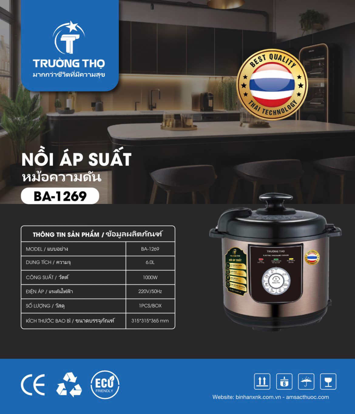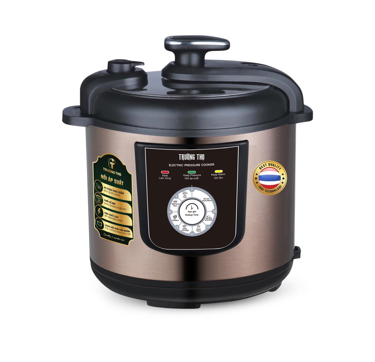 Với nguyên lý chế biến thực phẩm với áp suất; nhiệt độ cao cùng thiết kế lòng nồi dày dặn đa lớp, nồi áp suất điện Trường Thọ BA-1269 tiết kiệm tối đa thời gian và năng lượng, giữ nhiệt độ ổn định với hiệu quả giữ ấm hơn 80% và tiết kiệm tới 30% điện năng so với nồi áp suất bình thường. Mâm nhiệt lớn gia nhiệt nhanh, truyền nhiệt đều giúp thực phẩm chín đều, giữ trọn dinh dưỡng.