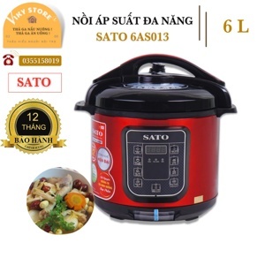 - Nồi áp suất điện đa năng SATO 6AS013 có dung tích 6 lít, lòng nồi sử dụng nguyên liệu hợp kim nhôm cao cấp phủ lớp chống dính cao cấp an toàn cho sức khỏe người sử dụng.