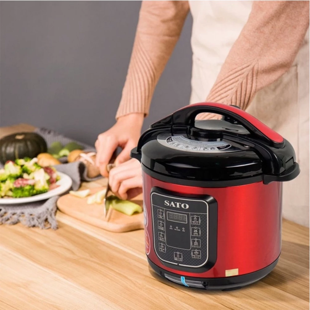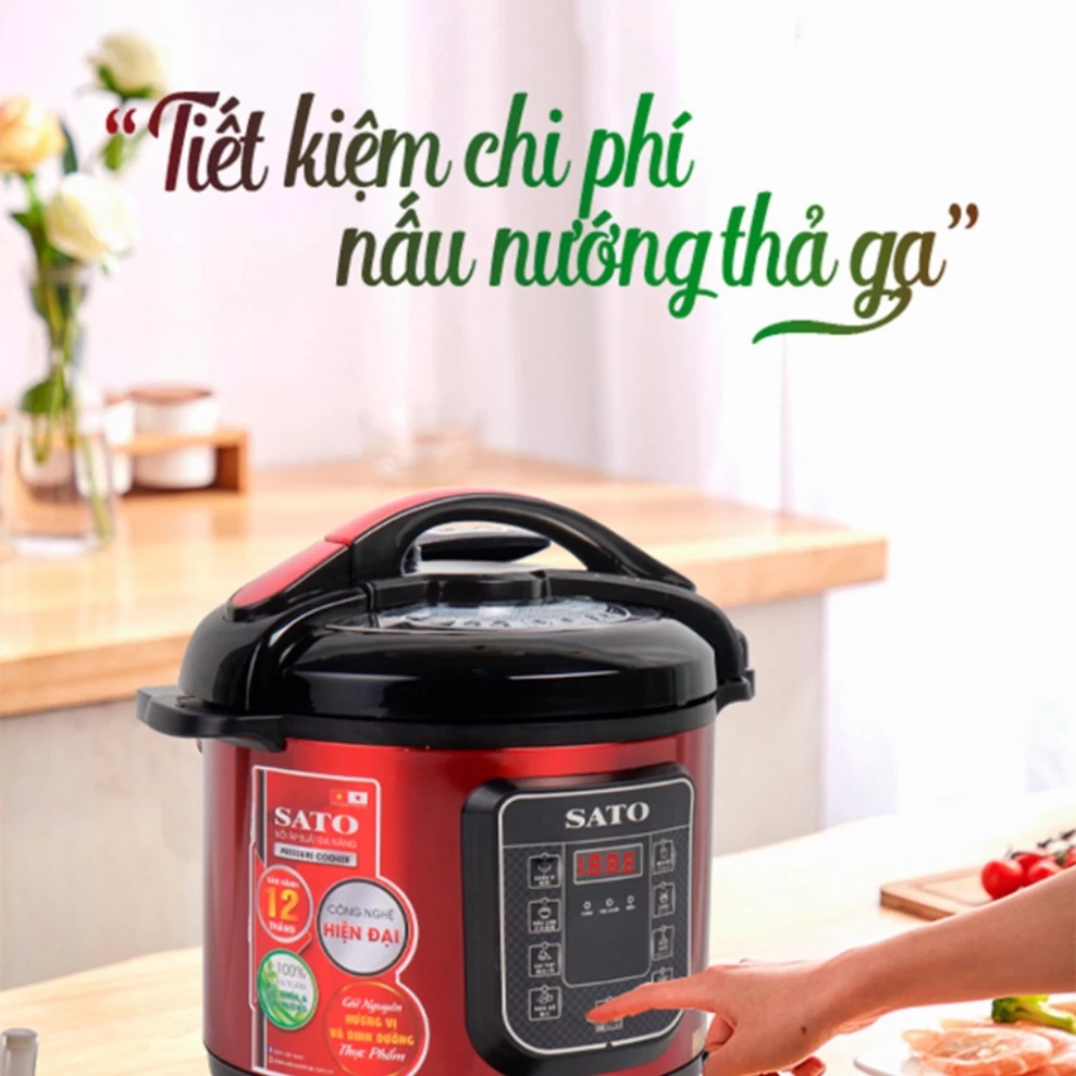 - Nồi áp suất điện đa chức năng SATO 6AS013 có thể tích chứa lớn 6 lít thuận tiện làm thức ăn cho đại gia đình có 5-7 người.