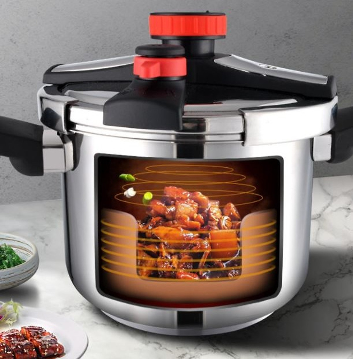 - Dẫn điện tốt cảm ứng nhiệt nhanh tạo áp xuất thủy lực giúp ăn chín nhanh hơn gấp 5 lần khi sử dụng nồi thông thường. Đồng thời tiết kiệm điện năng và Gas