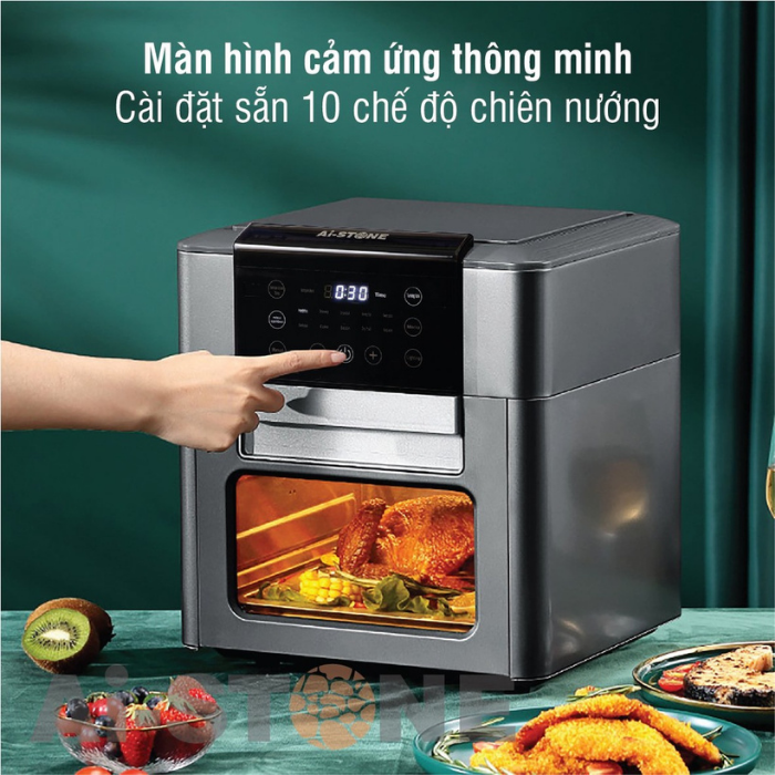 ✅Nồi chiên không dầu Ai-STONE Ai-6800 12L có công suất lên đến 1600w kết hợp cùng quạt đối lưu siêu lớn, lưu thông khí nóng 360 độ, như vậy, nhiệt lượng sẽ được truyền với cường độ lớn phủ khắp bề mặt và làm chín thực phẩm từ bên trong. Với công nghệ này, nhiệt độ sẽ được tập trung tối ưu trong nồi, không thoát ra khi chiên, nướng, không gây mùi khó chịu như những phương pháp chế biến thông thường mà vẫn đáp ứng tiêu chí ngoài giòn, trong mềm. Nồi chiên không dầu Ai-STONE Ai-6800 12L được thiết kế bảng điều khiển cảm ứng nhanh nhạy rất dễ sử dụng. Với hình ảnh chi tiết các chức năng hiện rõ ràng trên bảng điện tử.