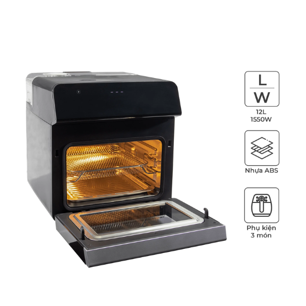 Nồi chiên không dầu Eco Magic S12 là phiên bản nồi chiên dạng lò với dung tích lớn 12L, phù hợp cho gia đình đông thành viên hoặc người dùng thích chế biến đa dạng món ăn. Thiết kế dạng lò với cửa kính chịu nhiệt giúp mở rộng không gian chiên nướng và quan sát thực phẩm một cách trực quan trong suốt quá trình hoạt động.