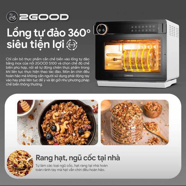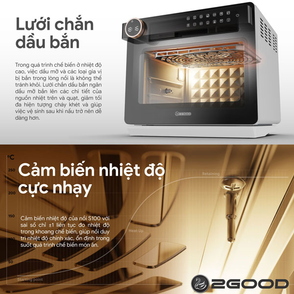 Ngày nay nồi chiên không dầu đã trở nên phổ biến trong căn bếp của gia đình Việt. Bởi những ưu điểm mà nó mang. Tiện lợi và an toàn, nồi chiên không dầu giúp tiết kiệm tối đa thời gian, công sức cũng như đảm bảo sức khỏe cho bạn. Nếu so với phương pháp chiên dầu truyền thống, nó giảm được 80- 90% lượng dầu dư thừa bị đốt cháy trong quá trình chiên rán. Cùng tìm hiểu kỹ hơn về các công dụng của nồi chiên không dầu thông qua một sản phẩm của thương hiệu nổi tiếng 2GOOD đó là Nồi chiên không dầu kèm hấp 2GOOD S100 đang rất được ưa chuộng trên thị trường hiện nay.