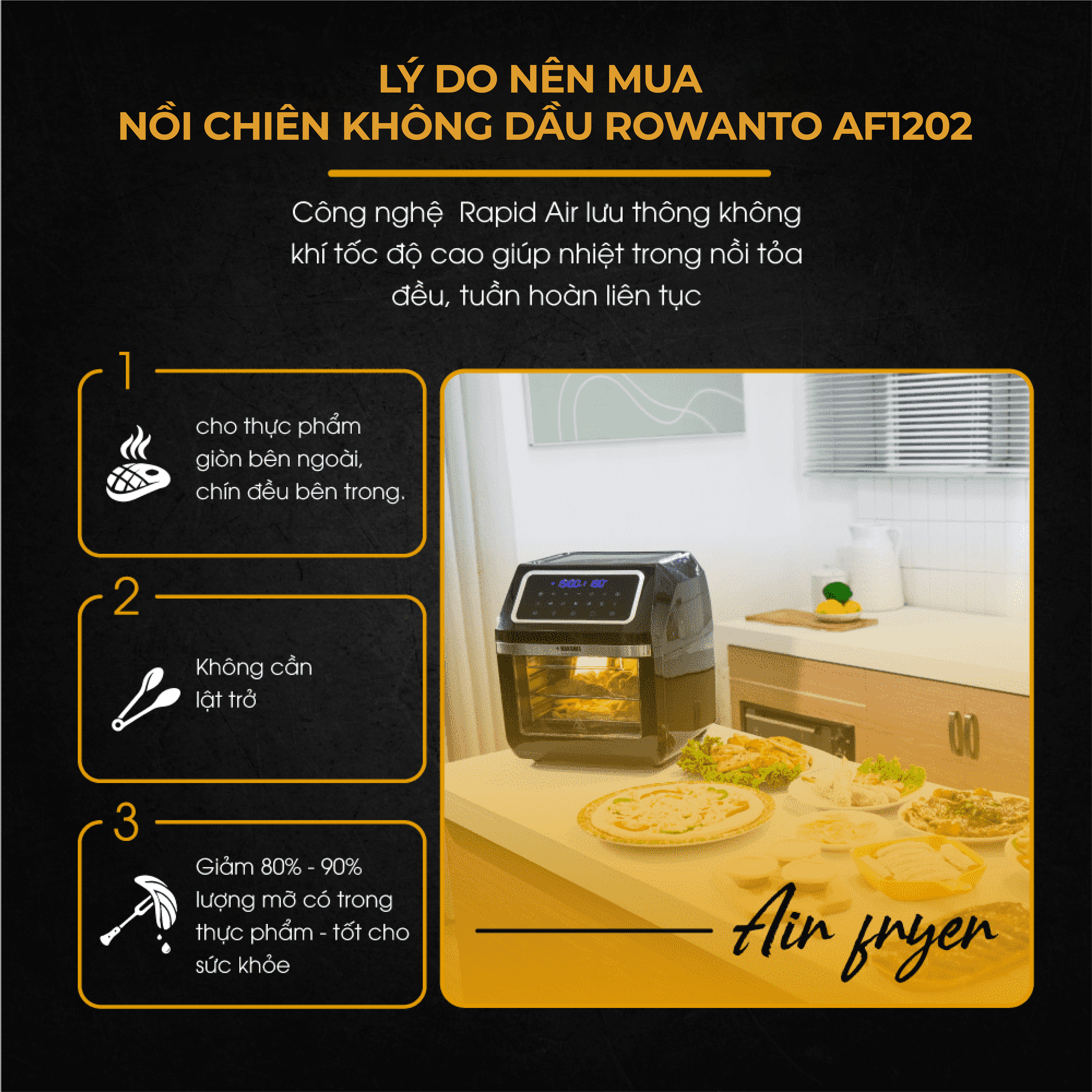 Lý do nên mua nồi chiên không dầu Rowanto AF1202: