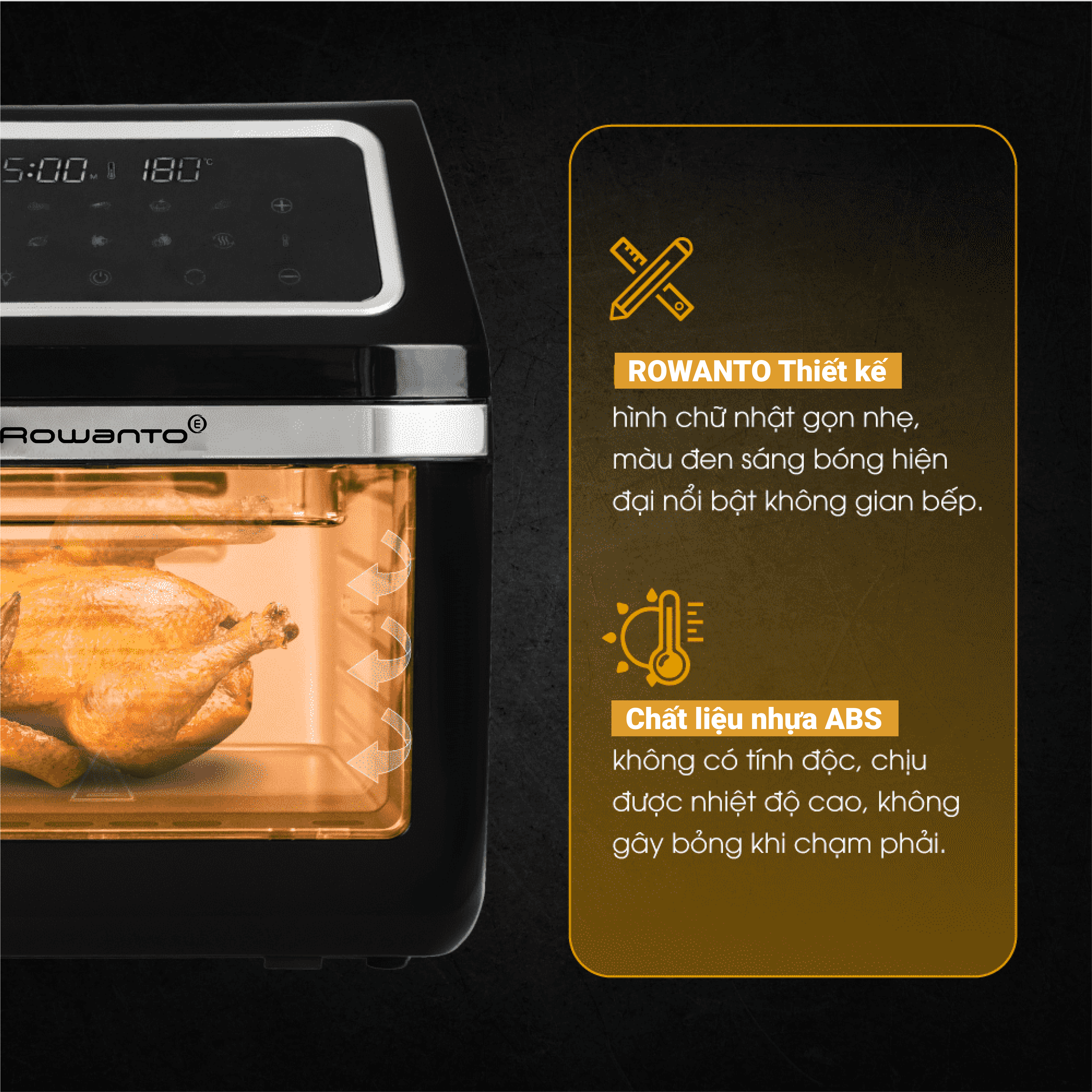 - Công nghệ Rapid Air lưu thông không khí tốc độ cao giúp nhiệt trong nồi tỏa ra đều, tuần hoàn liên tục