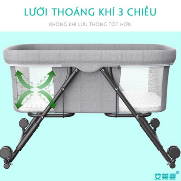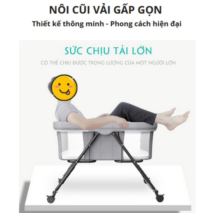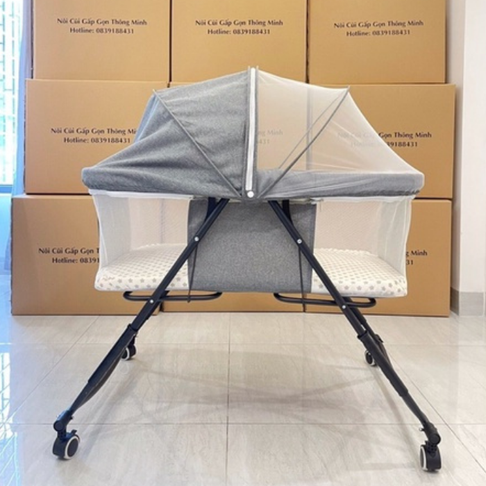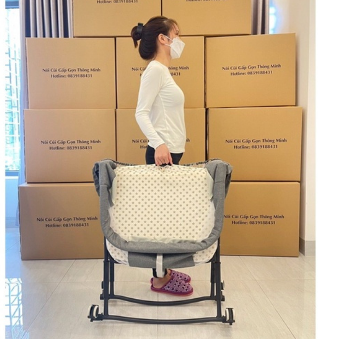 - Nôi thiết kế gấp gọn dễ dàng có thể mở ra gấp lại dễ dàng phù hợp với diện tích phòng