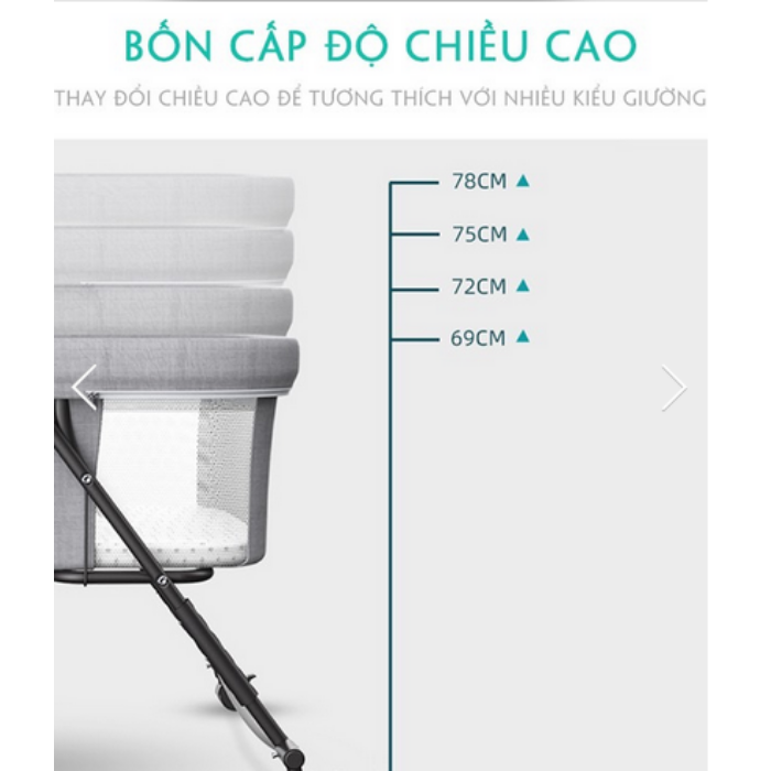 - Nôi có thể điều chỉnh độ cao để phù hợp với giường bố mẹ