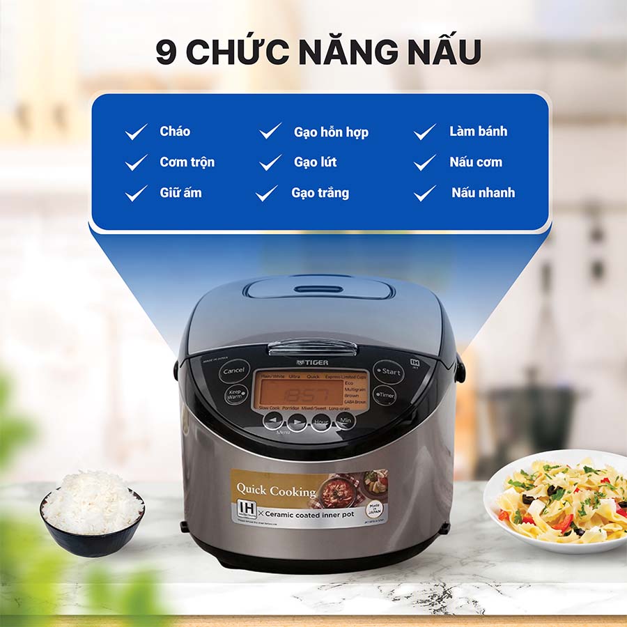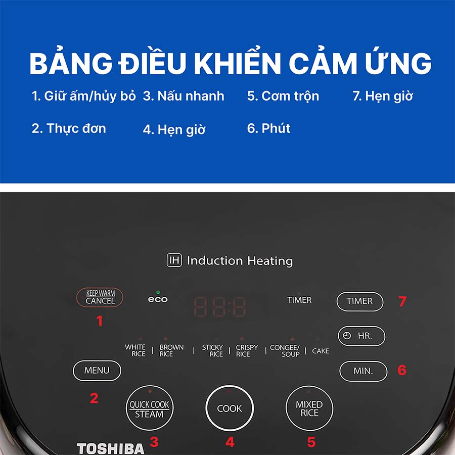Toshiba RC-18IX1PV tích hợp nhiều chế độ nấu tự động, đáp ứng nhu cầu phong phú của người dùng. Bạn có thể dễ dàng chọn các chế độ như cơm trắng, cơm gạo lứt, cơm trộn, cơm cháy, cháo, xôi, hấp hoặc làm bánh. Ngoài ra, tính năng hẹn giờ linh hoạt và khả năng giữ ấm lên đến 24 giờ đảm bảo cơm luôn nóng hổi và thơm ngon, sẵn sàng phục vụ bất cứ khi nào.