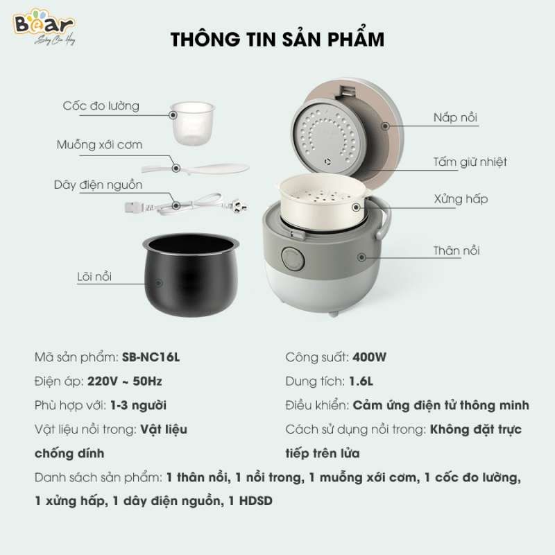 | Tên sản phẩm | Nồi cơm điện Bear SB-NC16L |