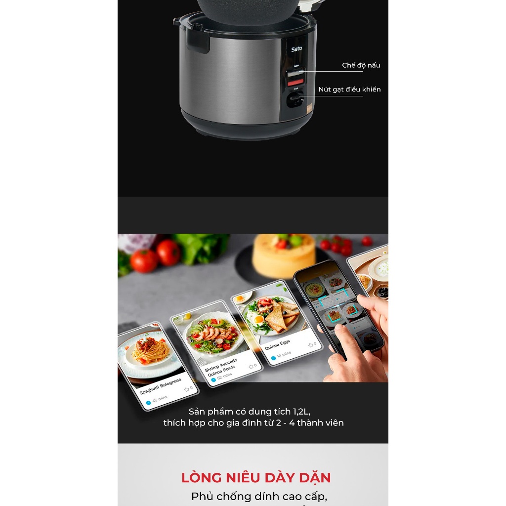 - Dung tích: 1,2L, thích hợp cho từ 2 - 4 người ăn.