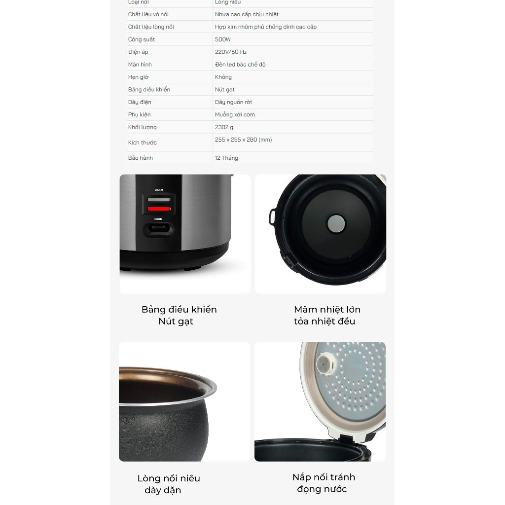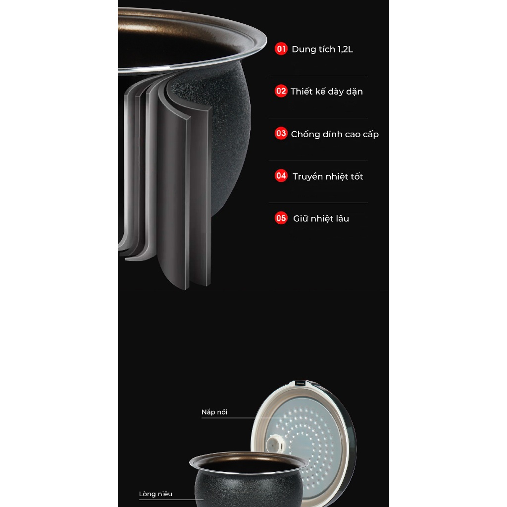 | 6 | Chất liệu lòng nồi | Hợp kim nhôm phủ chống dính cao cấp |