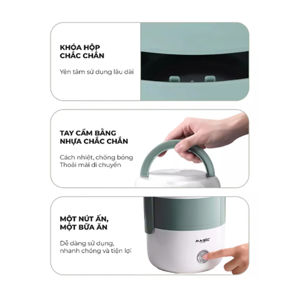 Với mức dung tích lý tưởng, khả năng nấu ổn định và thiết kế bền bỉ, nồi cơm điện Magic A-002 2L là sản phẩm phù hợp cho mọi gia đình, sinh viên, phòng trọ hoặc không gian bếp nhỏ.