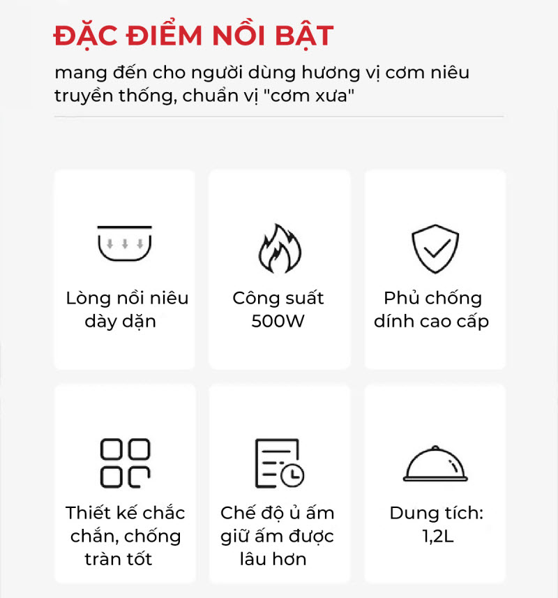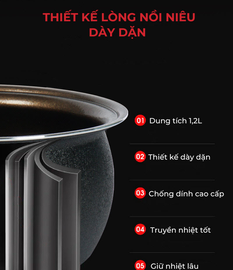 Nồi Cơm Điện Lòng Niêu SATO 12A016.N 1.2L là sản phẩm nổi bật, kết hợp công nghệ Nhật Bản tiên tiến với thiết kế lòng niêu độc đáo, sản xuất tại Việt Nam theo tiêu chuẩn chất lượng cao. Với dung tích 1.2 lít, công suất 500W, và các tính năng tiện lợi, sản phẩm này không chỉ nấu cơm thơm ngon như niêu đất mà còn đảm bảo an toàn và độ bền vượt trội. Hãy cùng khám phá chi tiết để thấy tại sao SATO 12A016.N là lựa chọn lý tưởng cho gia đình nhỏ!