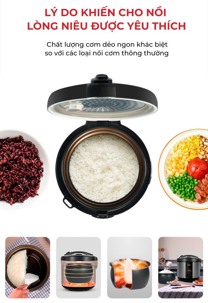Điện áp 220V/50Hz chuẩn Việt Nam đảm bảo hoạt động ổn định, không gây quá tải. Van thoát hơi thông minh giúp hạn chế đọng nước, giữ lại vitamin và dưỡng chất trong cơm, mang lại bữa ăn vừa ngon vừa bổ dưỡng. Sản phẩm tiết kiệm điện năng nhờ thiết kế tối ưu và chế độ tự ngắt khi cơm chín, giúp giảm chi phí sử dụng lâu dài.