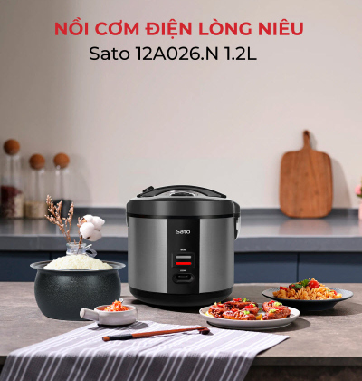 Nồi Cơm Điện Lòng Niêu SATO 12A026.N 1.2L là sản phẩm cao cấp, kết hợp công nghệ Nhật Bản và sản xuất tại Việt Nam, mang lại những bữa cơm thơm ngon, dẻo mềm như nấu bằng niêu đất truyền thống. Với dung tích 1.2 lít, công suất 500W, và thiết kế thông minh, sản phẩm này phù hợp cho gia đình nhỏ 2-4 người, đảm bảo tiện lợi, an toàn và độ bền vượt trội. Phù hợp cho gia đình, phòng trọ, hoặc văn phòng, SATO 12A026.N là lựa chọn lý tưởng cho mọi nhu cầu.![]()