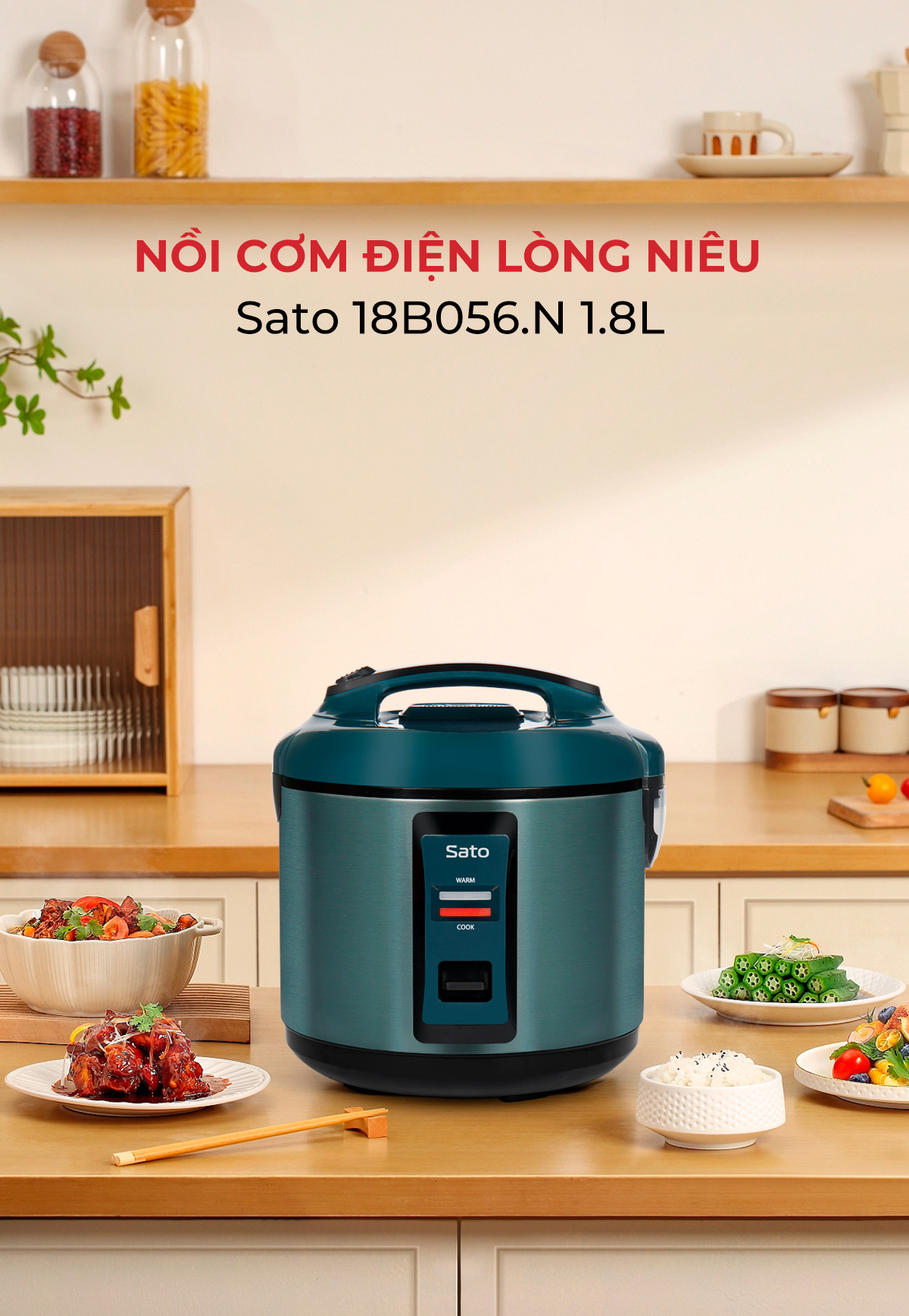 Nồi Cơm Điện Lòng Niêu SATO 18B056.N 1.8L là sản phẩm cao cấp, kết hợp công nghệ Nhật Bản và sản xuất tại Việt Nam, mang lại những bữa cơm thơm ngon, dẻo mềm như nấu bằng niêu đất truyền thống. Với dung tích 1.8 lít, công suất 700W, và khả năng nấu nhanh, tiết kiệm điện, sản phẩm này phù hợp cho gia đình 4-6 người, đảm bảo tiện lợi, an toàn và độ bền vượt trội. Phù hợp cho gia đình, văn phòng, hoặc căn hộ, SATO 18B056.N là lựa chọn lý tưởng cho mọi nhu cầu.![]()