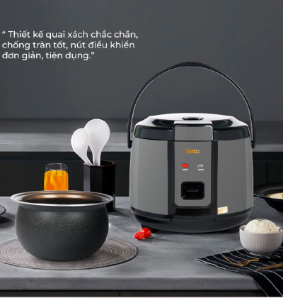 Thiết kế của nồi cơm điện Sato 18F058.N nổi bật với kiểu dáng sang trọng, màu sắc tinh tế, phù hợp với mọi không gian bếp. Quai xách chắc chắn và hệ thống chống tràn hiệu quả giúp việc di chuyển và sử dụng trở nên tiện lợi, an toàn. Nút điều khiển cơ học đơn giản, dễ thao tác, phù hợp với mọi đối tượng người dùng, từ người lớn tuổi đến những người mới sử dụng nồi cơm điện.![]()