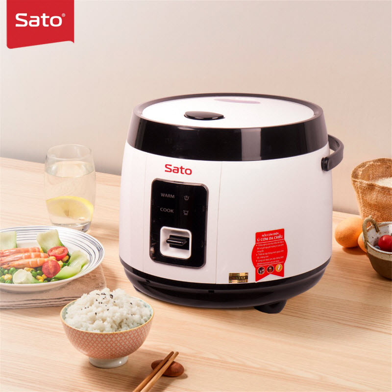 - Nồi cơm điện nắp liền Sato 18F061 có đa chức năng: Nấu cơm, nấu cháo, hấp bánh, hấp thực phẩm, rau củ và giữ nóng.![]()