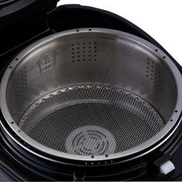 Lòng nồi được làm bằng hợp kim nhôm phủ lớp chống dính cao cấp, giúp hạn chế cháy dính, cơm không bám nồi và rất dễ vệ sinh sau khi dùng. Bên trong có các khay lọc được bố trí khoa học để tách nước cơm và tinh bột hiệu quả.