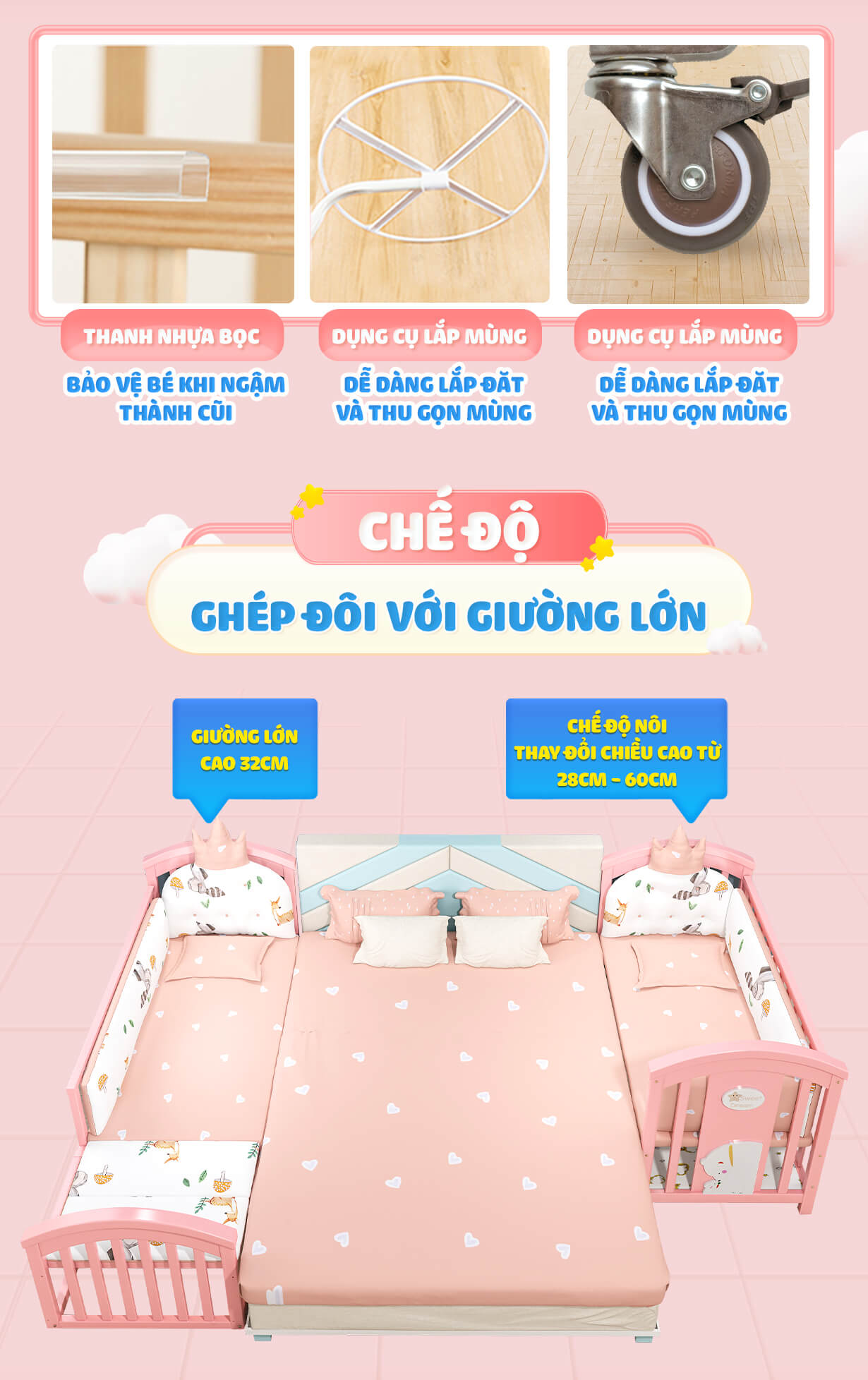 + Chế độ giường cũi lớn cho bé từ 3 tuổi trở lên