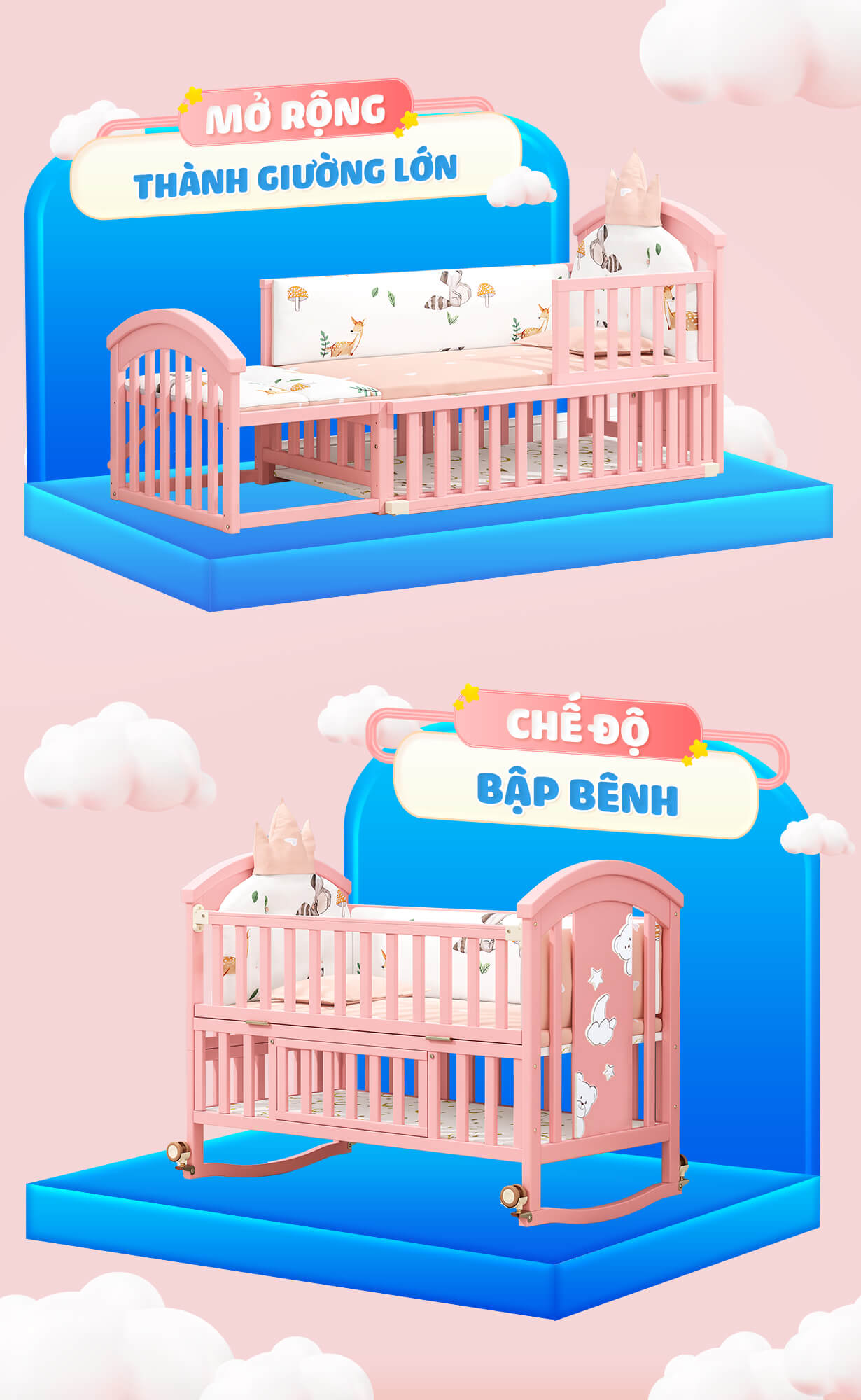 Chức năng đặc biệt của chiếc nôi cho bé này là đem đến sự tiện lợi và tiết kiệm về lâu dài: Có thể kéo thành giường dài lên đến 1m6 để phù hợp cho bé nằm một cách thoải mái.