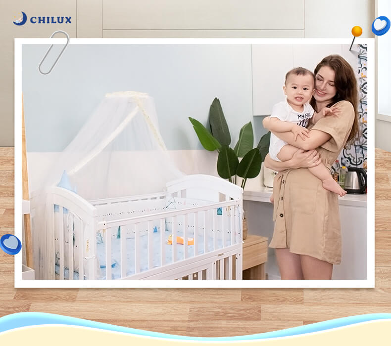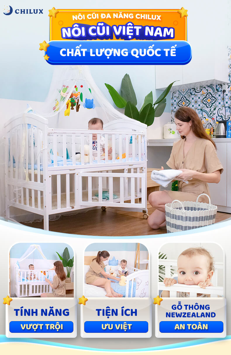 * Đặc biệt Chilux đã mở nhà máy trực tiếp sản xuất nôi trẻ em tại Việt Nam với diện tích rộng tới 2000m2, làm chủ tất cả các khâu sản xuất, từ nhập khẩu nguyên liệu gỗ đến từng công đoạn hoàn thiện sản phẩm để đảm bảo từng chiếc nôi cũi cho bé được an toàn tuyệt đối với trẻ sơ sinh