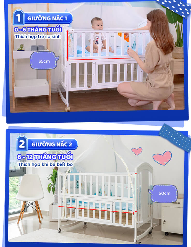 + Chế độ giường 2 sâu 50cm dành cho bé từ 6 – 12 tháng tuổi