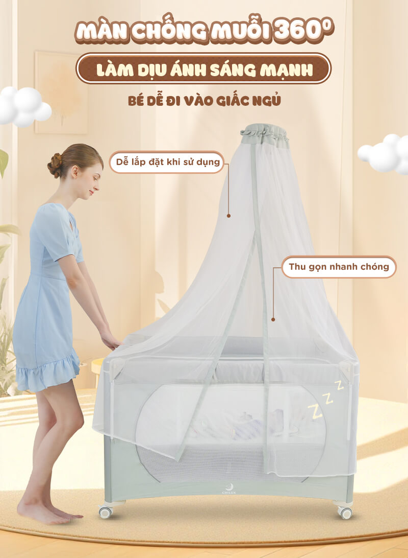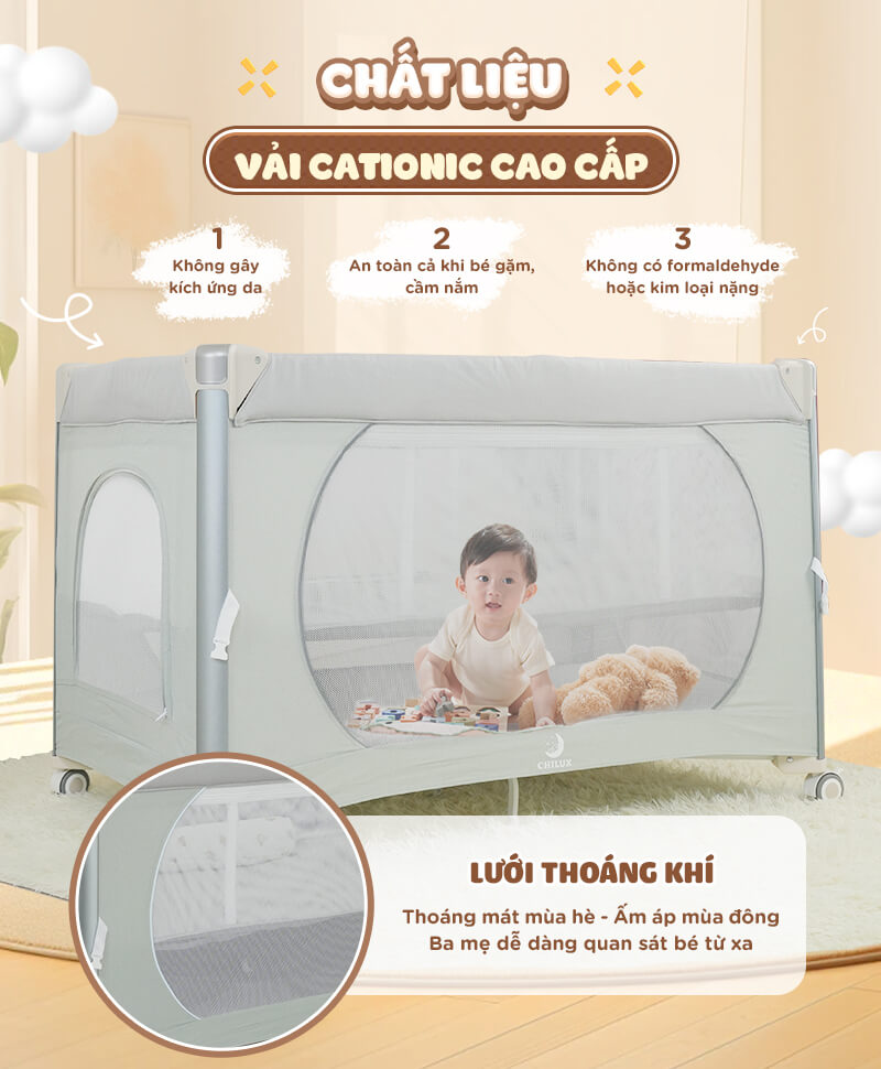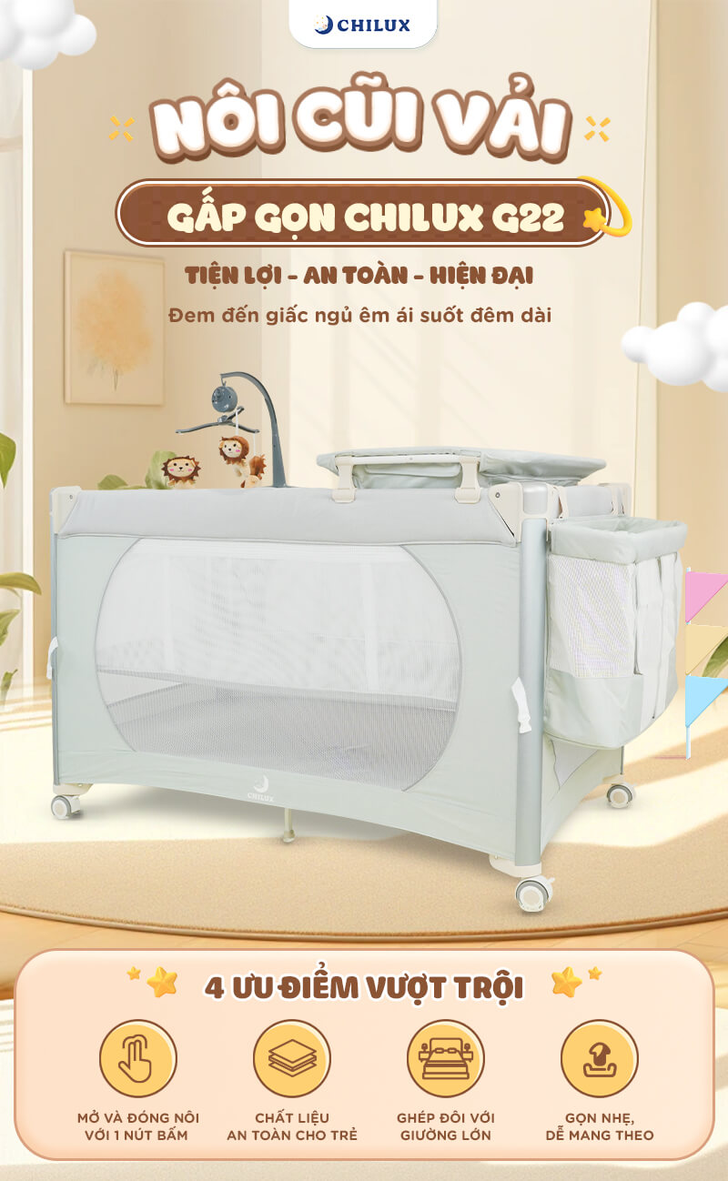 Nôi Cũi Vải Đa Năng Gấp Gọn Chilux G22, Khung Hợp Kim Nhôm, Bảo Hành Chính Hãng 12 Tháng