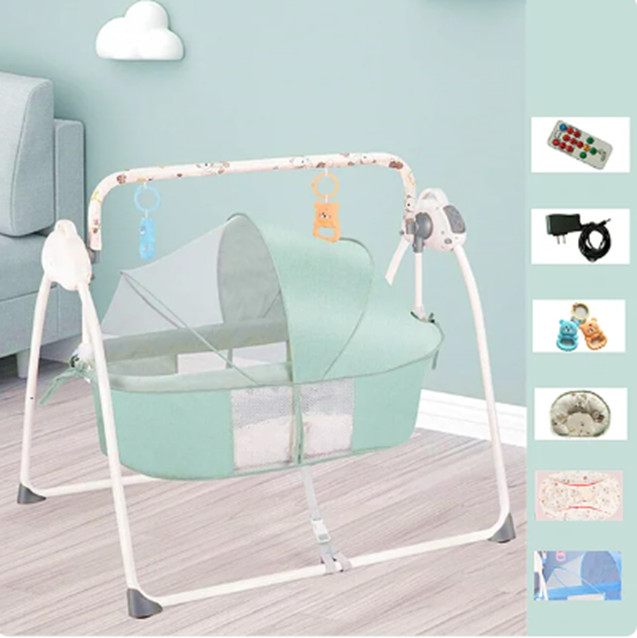 -Nôi điện tự động cho bé đa năng, nhẹ có thể gấp lại, không cần lắp đặt, dễ dàng vệ sinh.
