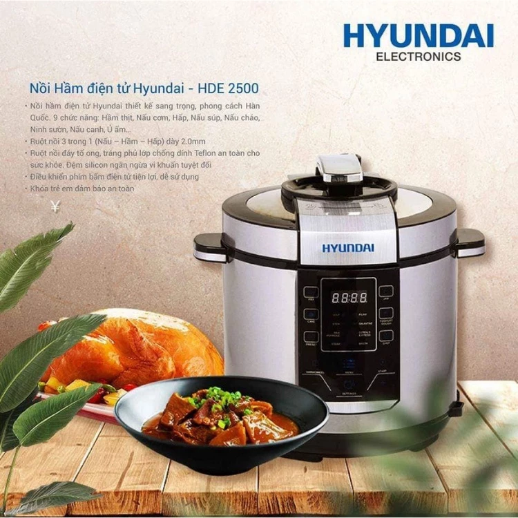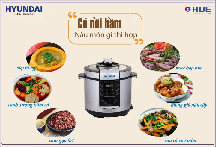 - Nồi hầm điện tử Hyundai là sản phẩm hiện đại với nhiều tính năng, chế độ nấu thông minh, phù hợp với từng loại thức ăn .