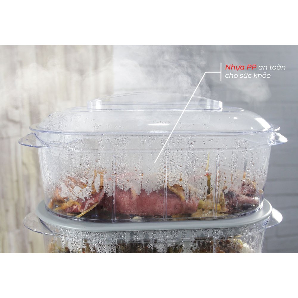 – Thiết kế 3 tầng với dung tích lên đến 10,5 lít, có thể hấp cùng lúc nhiều loại thực phẩm.