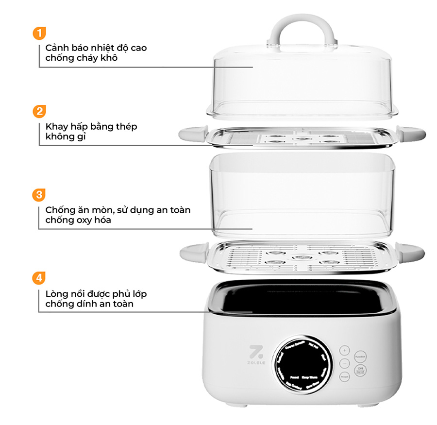 Dễ dàng vệ sinh: Các tầng hấp có thể tháo rời, thuận tiện cho việc vệ sinh sau khi sử dụng.