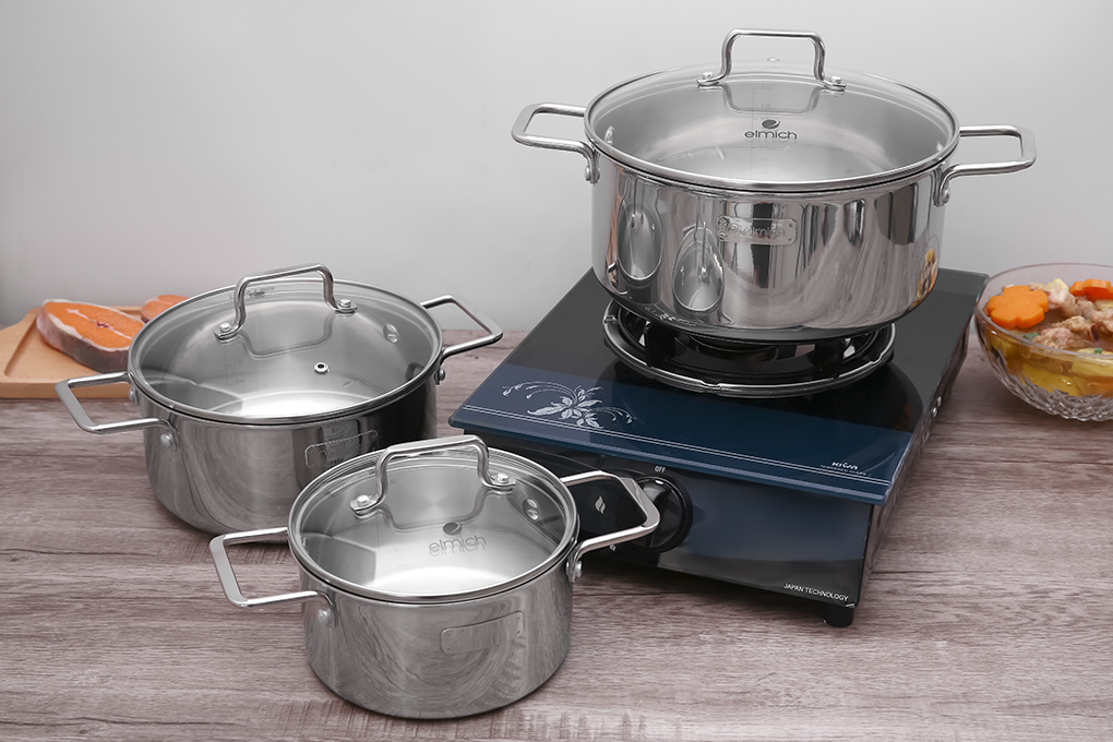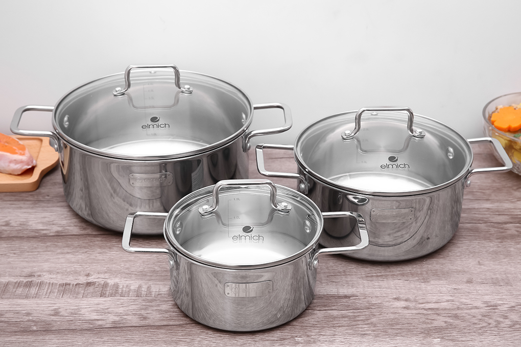 Nồi inox liền khối Elmich Trimax XR EL 3843 size 16, 20, 24cm