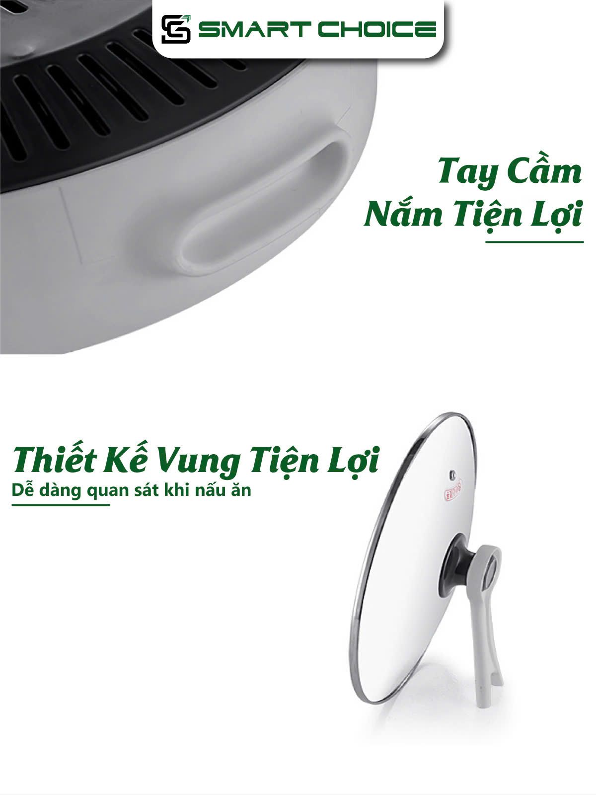 Nồi lẩu tròn kèm khay nướng Smartchoice LND002 là sản phẩm không thể thiếu trong căn bếp hiện đại. Với thiết kế tiện lợi, chất liệu an toàn và nhiều tính năng ưu việt, đây chắc chắn sẽ là sự lựa chọn hoàn hảo để nâng cao trải nghiệm ẩm thực của bạn và gia đình.