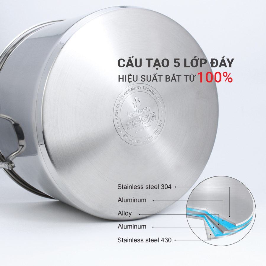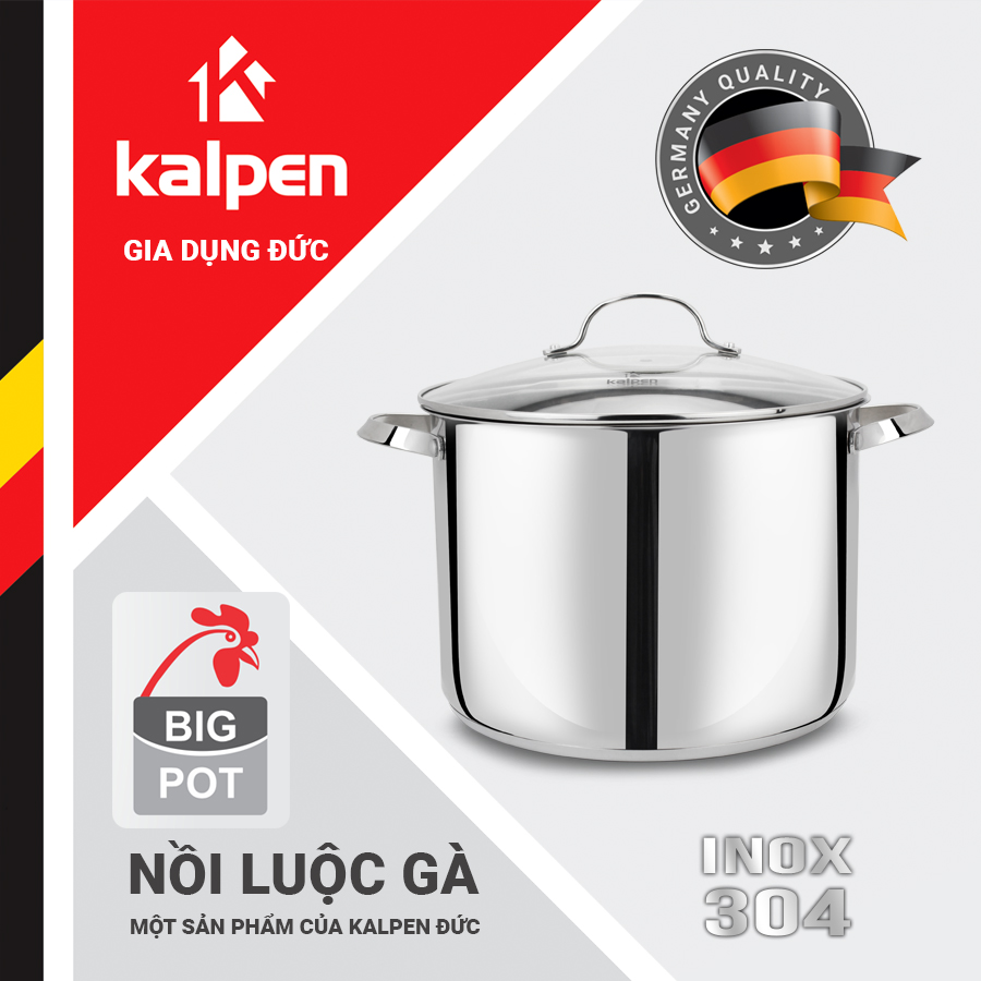 Nồi luộc gà Inox 304 cao cấp Kalpen Lermat 5 đáy là một sản phẩm thiết kế và sản xuất theo tiêu chuẩn Đức - sản phẩm ra đời để đáp ứng nhu cầu cao nhất và thị hiếu của người tiêu dùng Việt Nam về một chiếc nồi luộc gà cao cấp, thẩm mỹ đẹp, có dung tích lớn để có thể luộc gà đẹp, ngon và tiện dụng cho những nhu cầu nấu nướng khác.