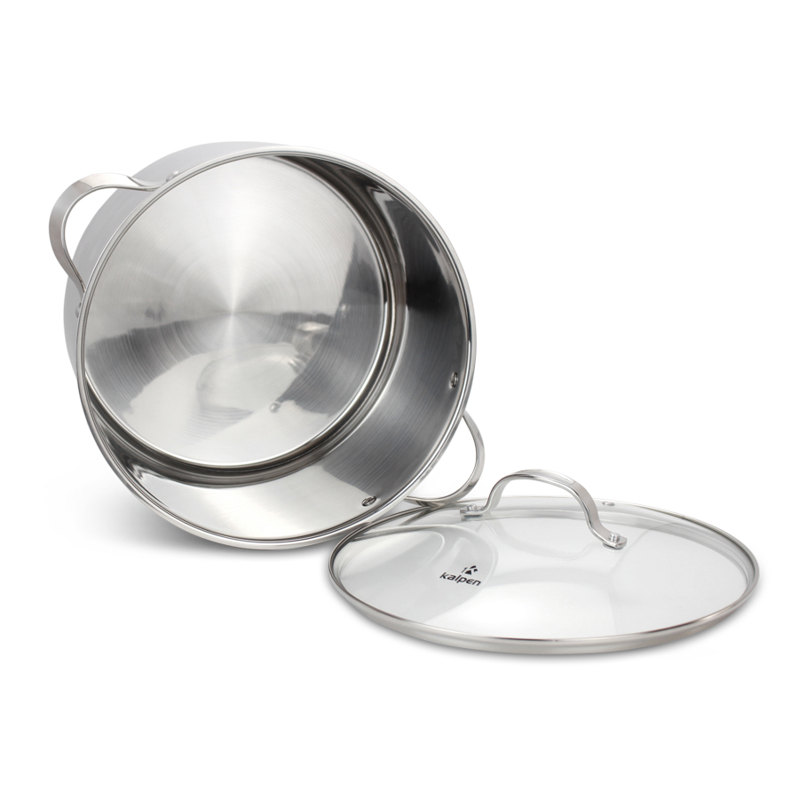 Mặc dù có dung tích lớn nhưng nồi luộc gà Kalpen Lermat 5 đáy không cồng kềnh, không thô ráp mà sản phẩm sáng bóng, thanh thoát toát lên sự sang trọng rất phù hợp với những không gian bếp hiện đại.