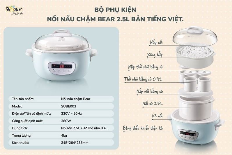 Tên sản phẩm: Nồi Nấu Chậm 2.5L Bear SUBE003