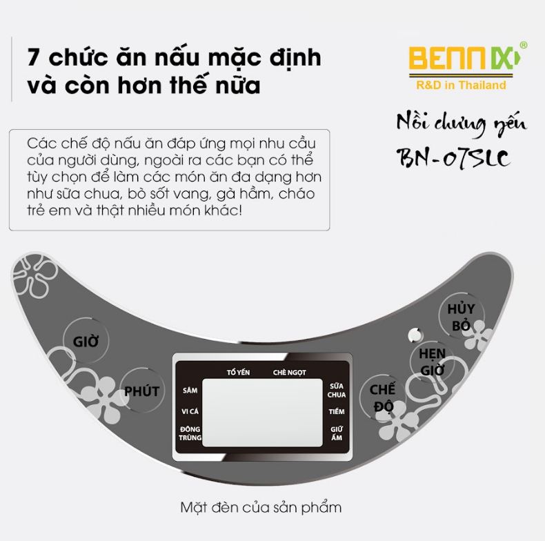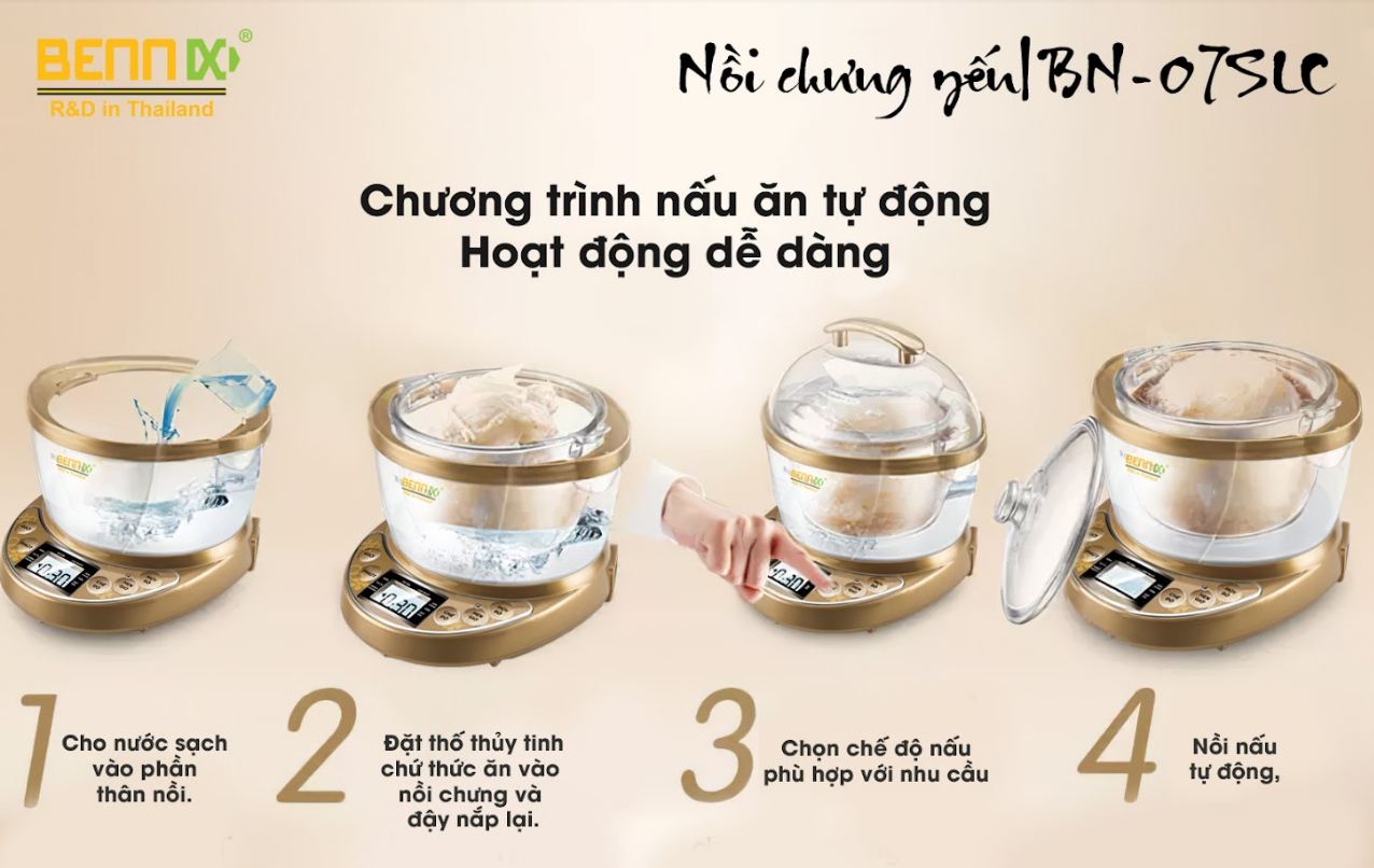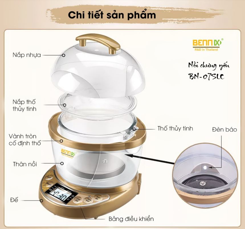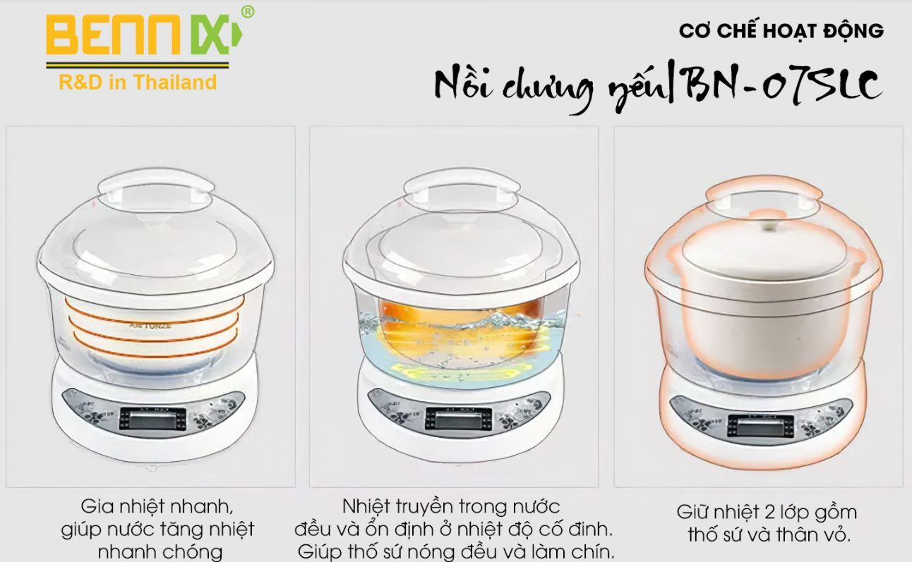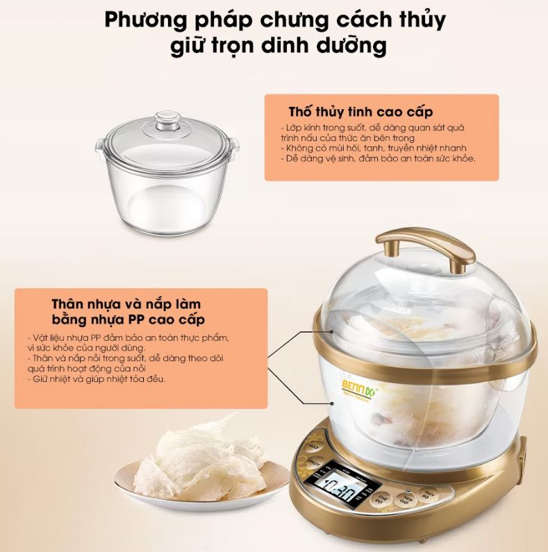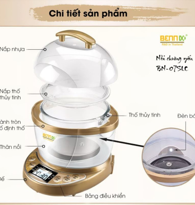 Nồi nấu cháo chậm, chưng yến Bennix 0.7L - BN07SLC - Hàng chính hãng