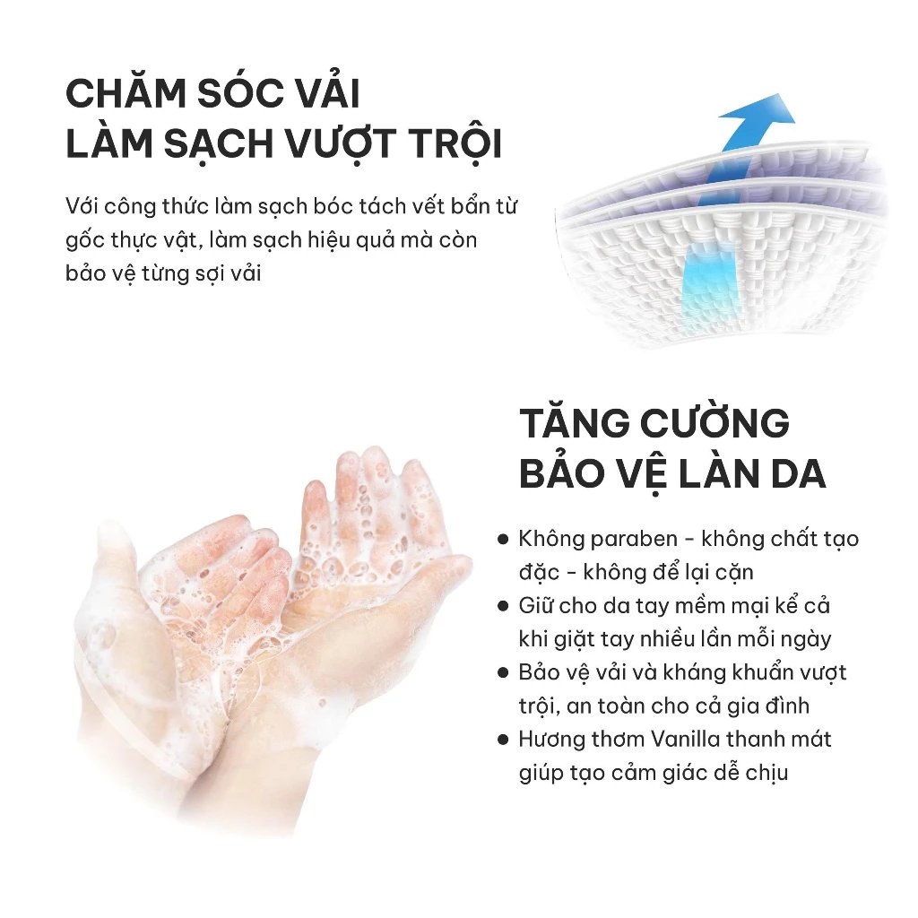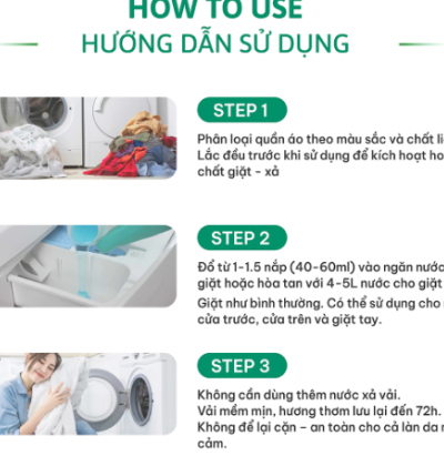 • Không để lại cặn – không gây bí lồng máy, bảo vệ độ bền của máy giặt