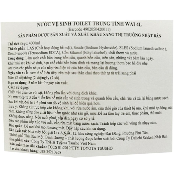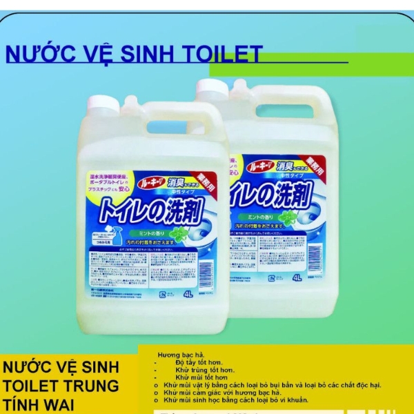 Nước vệ sinh Toilet WAI 4L là dung dịch tẩy rửa chuyên dụng với công thức trung tính, an toàn cho cả các bề mặt nhạy cảm như men sứ, inox, nhựa mà không gây ăn mòn. Sản phẩm giúp làm sạch hiệu quả các vết bẩn thông thường, ngăn ngừa sự phát triển của vi khuẩn và khử mùi hôi, giữ cho toilet luôn sạch sẽ và thơm mát. Dung tích lớn 4L rất tiết kiệm, phù hợp cho gia đình, văn phòng, nhà hàng hoặc các khu vực công cộng có nhu cầu sử dụng thường xuyên.