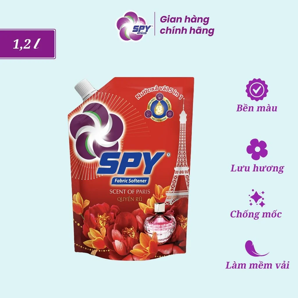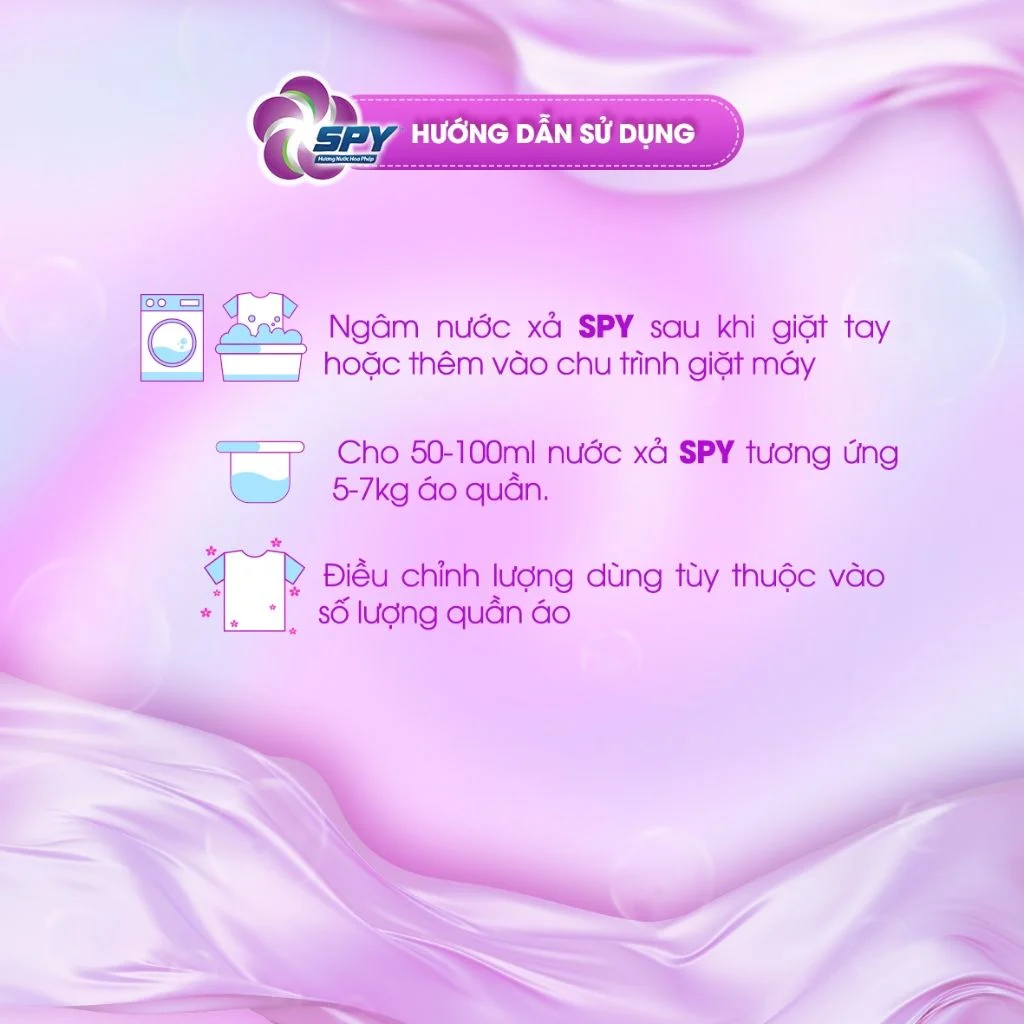 Hòa 50–100ml nước xả vải SPY vào nước (cho 5–7kg quần áo)