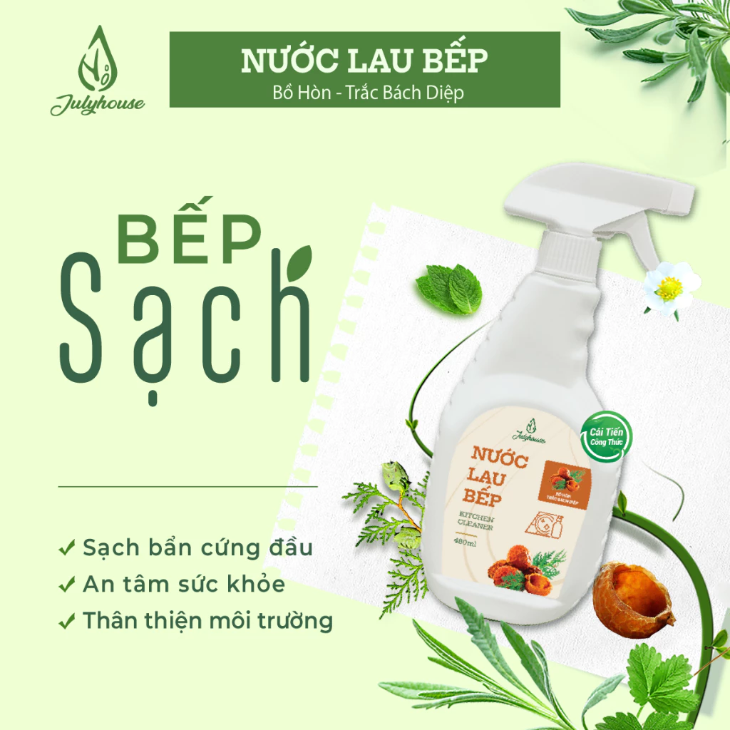 Xịt lau bếp đa năng JULYHOUSE chiết xuất Bồ Hòn và tinh dầu Trắc Bách Diệp sạch vết bẩn, dịu da tay 480ml
