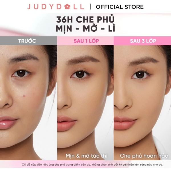 Ngoai ra san pham duoc kiem nghiem da lieu giam thieu nguy co kich ung phu hop cho da nhay cam. Do bam mau cao giup duy tri lop trang diem suot ngay dai ma khong can dam lai thuong xuyen. Day la ly do phan nen JUDYDOLL nhan duoc nhieu danh gia tot tu cong dong lam dep.