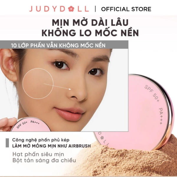 Ve thiet ke hop phan nen JUDYDOLL nho gon kem guong va mieng bay de dang mang theo trong tui xach hoac vi ca nhan. Chat phan min mang de tan deu bang bay hoac ngon tay khong gay bay bui hay von cuc giup tiet kiem thoi gian trang diem. Theo danh gia tu nguoi dung tren cac nen tang thuong mai dien tu nhu Shopee va Lazada san pham co do bam mau len den 810 gio ma khong troi hay lem du trong dieu kien mo hoi hay tiep xuc nuoc nhe. Nhieu chi em chia se rang phan nen nay giup kiem dau tot dac biet phu hop cho da dau hoac hon hop mang lai lop trang diem ben vung suot ngay dai.