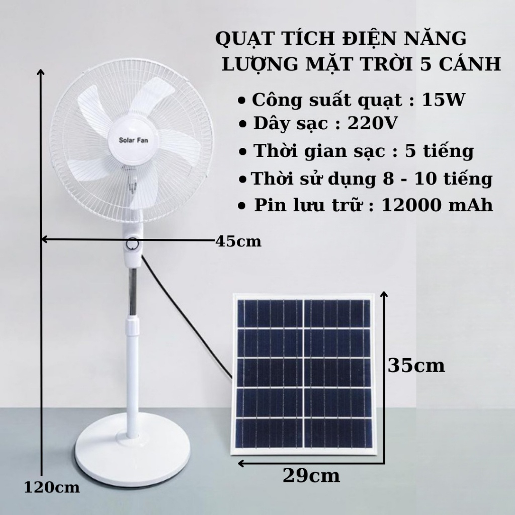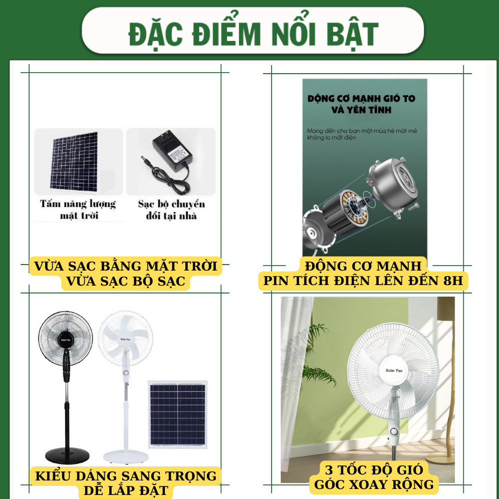 Quạt cây đứng tích điện năng lượng mặt trời Solar HS-168, công suất 15W, 3 cấp độ gió