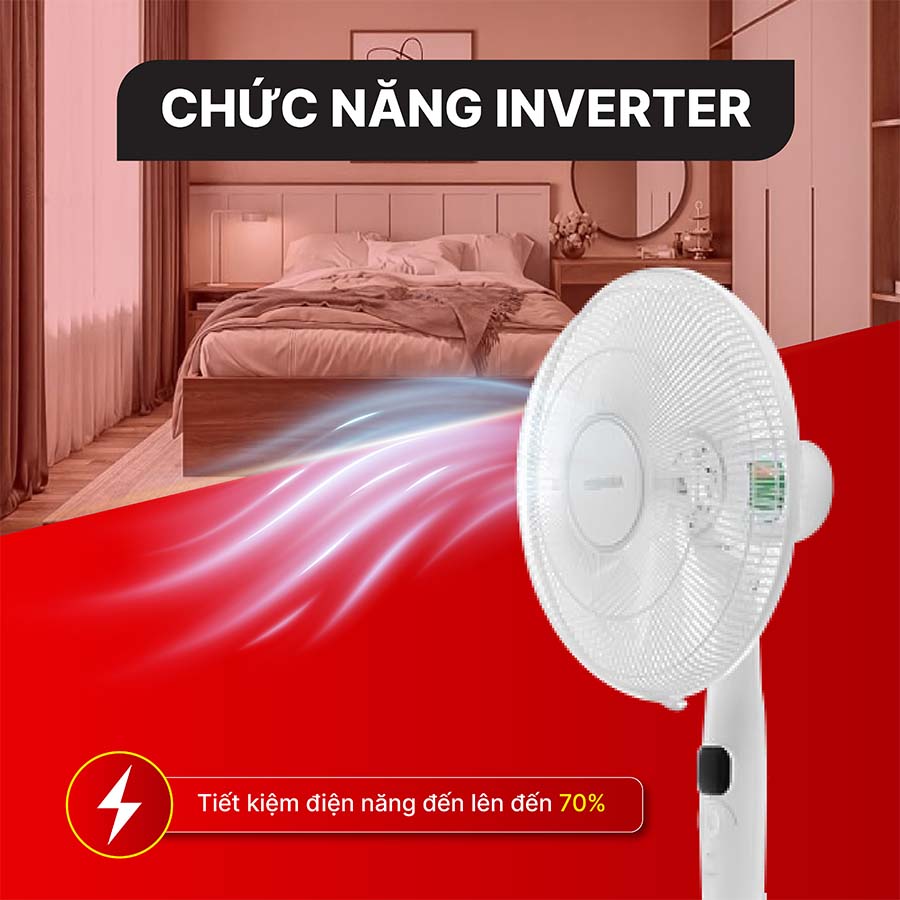Điểm nhấn nổi bật của quạt là động cơ DC Inverter công suất 30W, vừa vận hành mạnh mẽ vừa tiết kiệm điện năng đáng kể so với quạt thông thường. Công nghệ này giúp giảm rung lắc, hạn chế tiếng ồn và kéo dài tuổi thọ sản phẩm. Quạt cây Toshiba F-LSD10(W)VN mang đến sự yên tâm cho người dùng về cả hiệu suất lẫn độ bền trong quá trình sử dụng lâu dài.