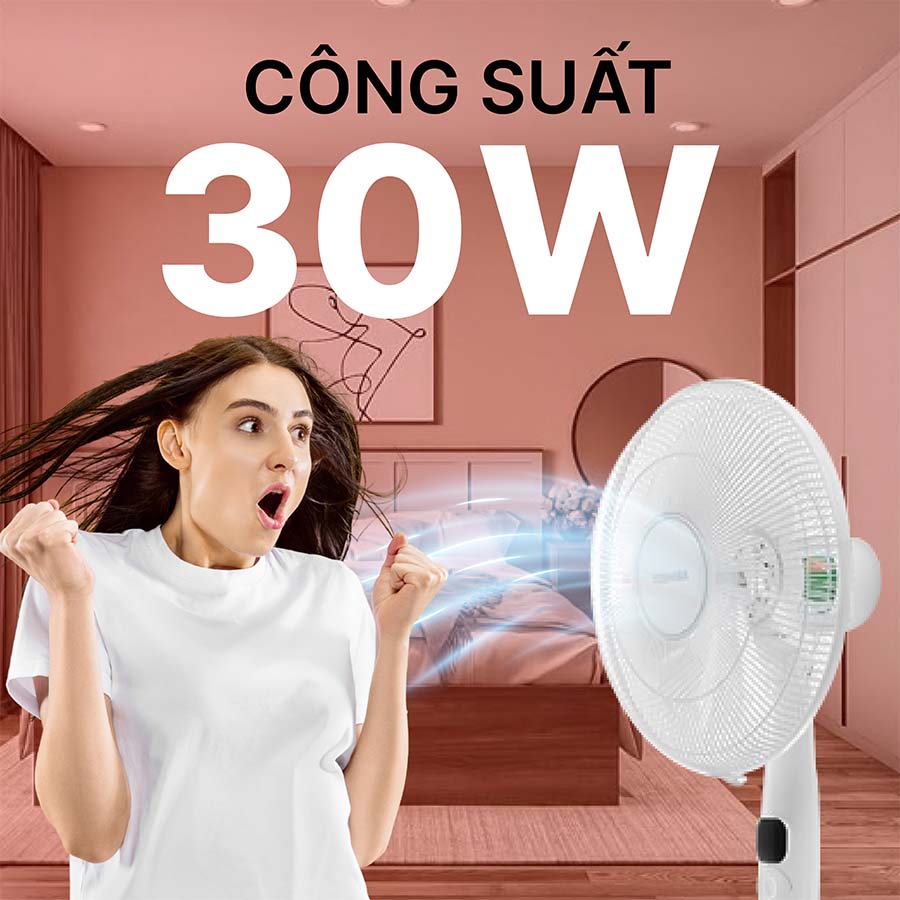 Hệ thống 9 cánh quạt với đường kính 40 cm tạo luồng gió rộng, mạnh và lan tỏa đều khắp không gian. Kết hợp cùng 26 mức tốc độ gió chi tiết và 4 chế độ gió thông minh gồm gió thường, gió tự nhiên, gió ngủ và gió yên tĩnh, người dùng có thể dễ dàng lựa chọn theo nhu cầu. Chế độ Silent là một ưu điểm vượt trội khi quạt vận hành cực êm, không gây ảnh hưởng đến giấc ngủ, phù hợp cho gia đình có trẻ nhỏ hoặc người lớn tuổi.