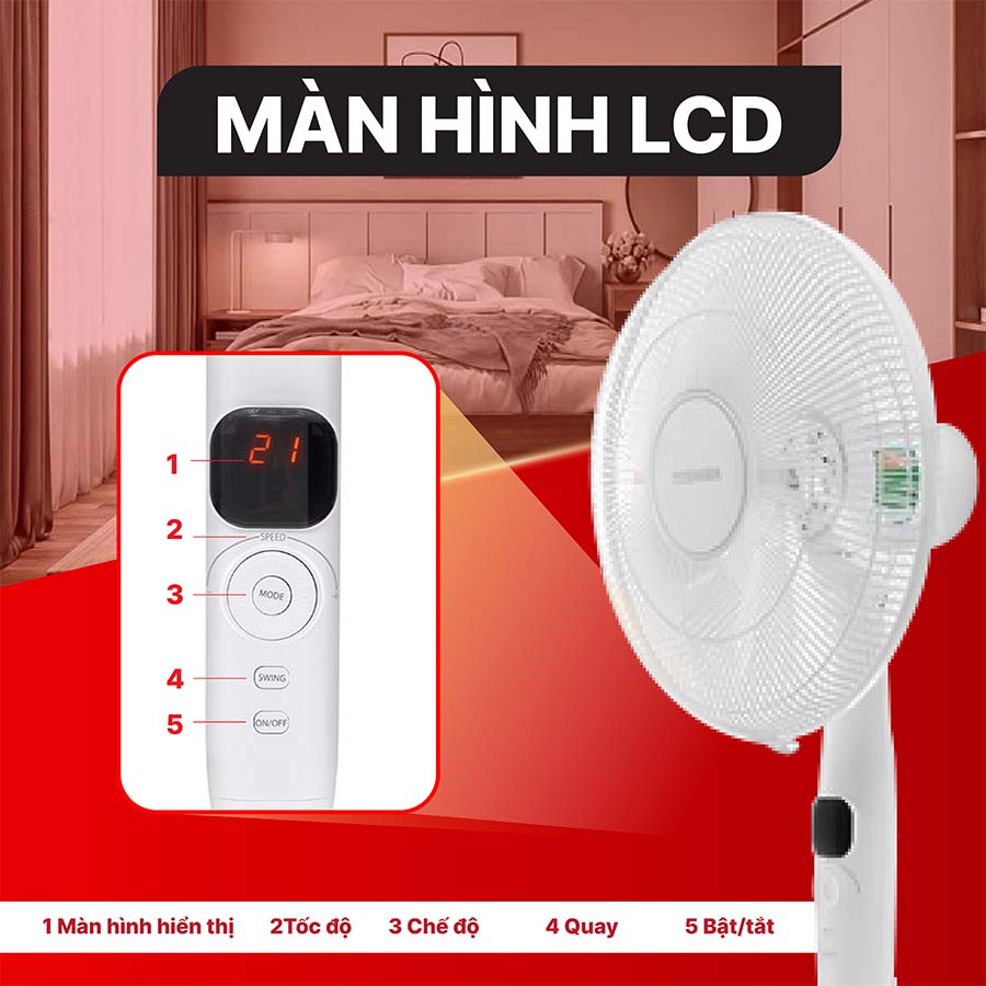 Toshiba F-LSD10(W)VN còn được tích hợp nhiều tiện ích để mang lại sự thoải mái trong quá trình sử dụng. Chức năng điều khiển từ xa cho phép điều chỉnh linh hoạt mà không cần di chuyển, chế độ hẹn giờ lên đến 12 giờ giúp chủ động quản lý thời gian hoạt động, tránh lãng phí điện năng. Quạt hỗ trợ điều chỉnh chiều cao từ 113 cm đến 133 cm, dễ dàng thay đổi để phù hợp với nhiều vị trí khác nhau trong phòng khách, phòng ngủ hay không gian làm việc.