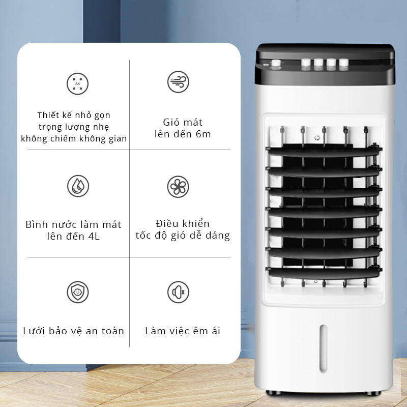 - Thiết kế nhỏ gọn mang tính linh hoạt có thể di động giúp làm mát mọi nơi.